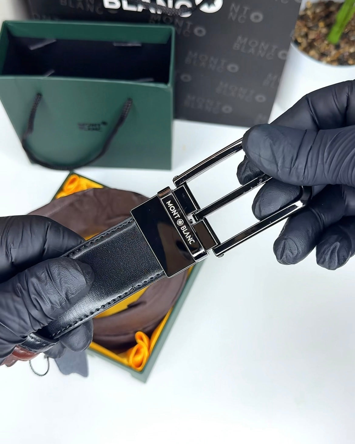 Ceinture Montblanc 𝗱𝗼𝘂𝗯𝗹𝗲 𝗳𝗮𝗰𝗲 en cuir véritable, élégante et réversible.